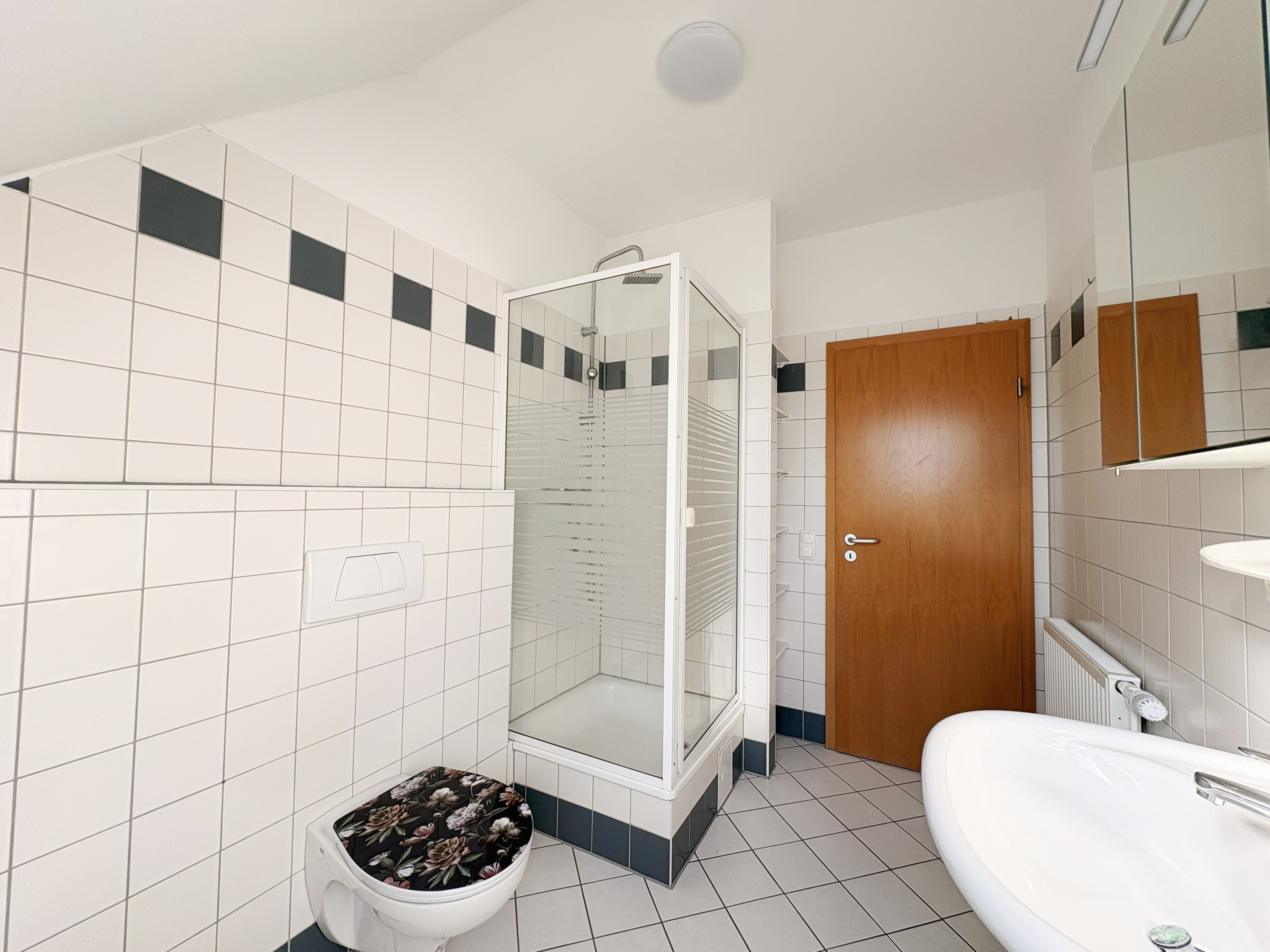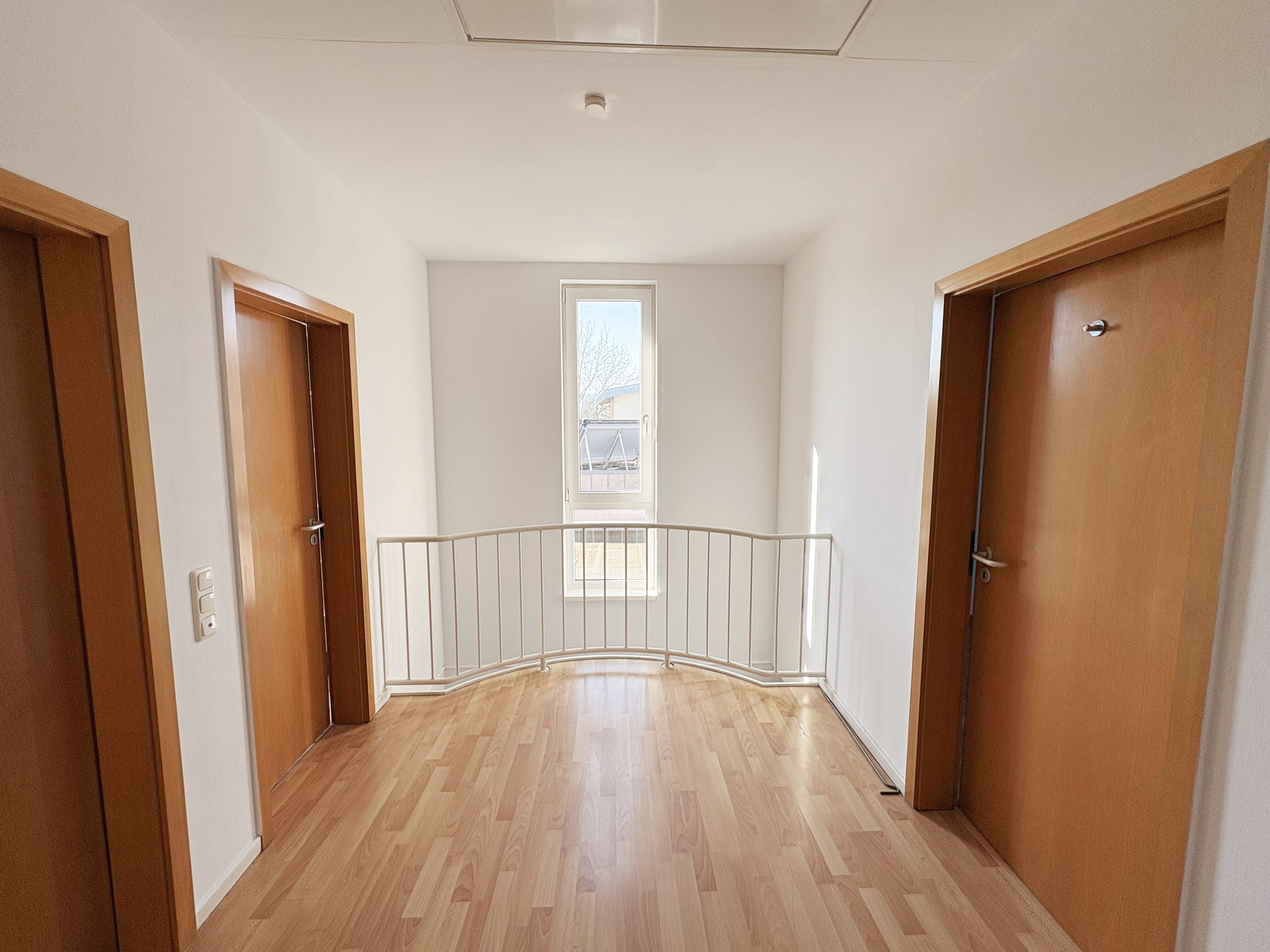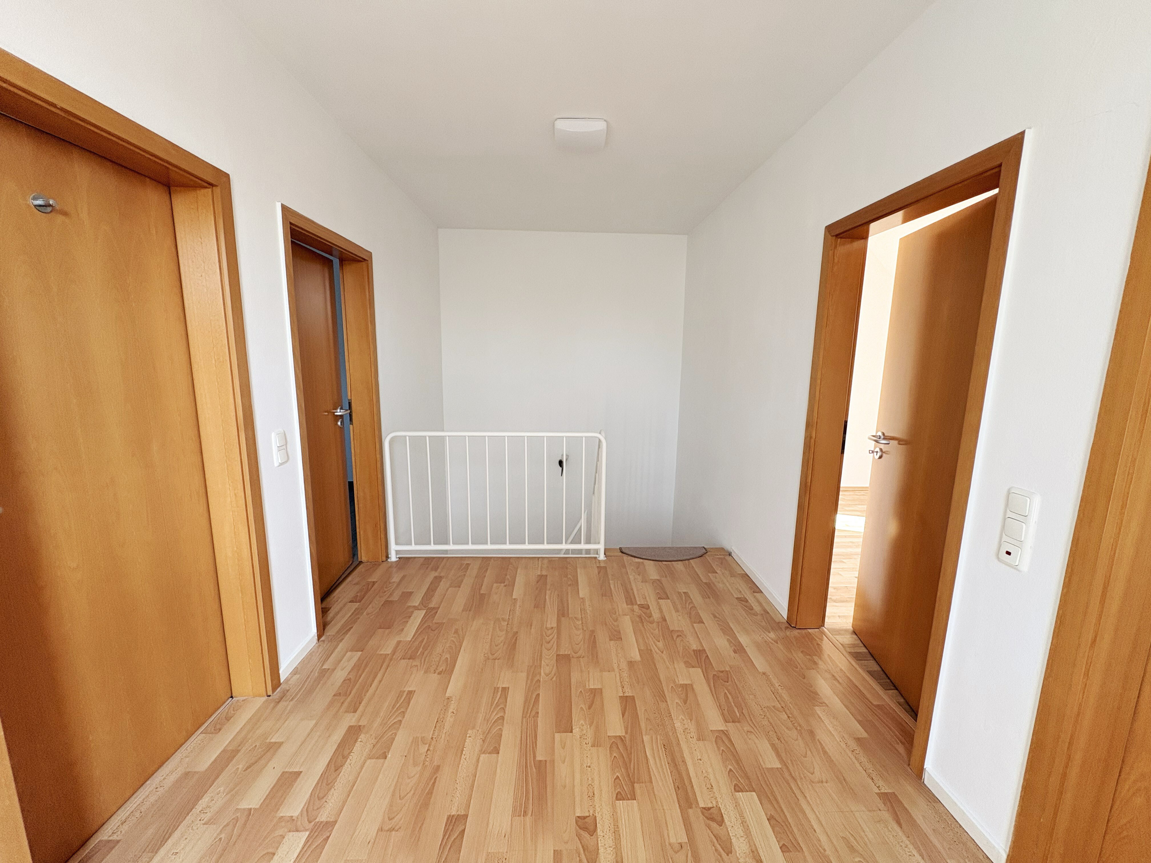 Im Obergeschoss befinden sich drei Zimmer, die individuell nutzbar sind sowie ein Badezimmer mit Dusche und Badewanne. Für weiteren Komfort sorgt das Gäste-WC im Erdgeschoss, welches schnell vom Hauseingang und Wohnzimmer zu erreichen ist.